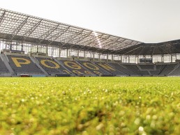 The stadium itself has recently undergone a complete modernization, so only part of the old stadium is still in place. A significant reconstruction started in 2019 with planned completion scheduled for 2022. The investment includes the Training Centre for Childres and Youth (Centrum Szkolenia Dzieci i Młodzieży), remodeling and expanding the stadium, football fields, and associated infrastructure. The new stadium will reach 20,500 seat capacity and 22,000 square meters of covered area. It will transform into a “closed” stadium with four grandstands and roofed.