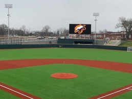 When fans head to the new ballpark in Gastonia, North Carolina, they will be welcomed by a main LED video display and exterior marquee display designed and manufactured by Daktronics (NASDAQ-DAKT) of Brookings, South Dakota. The 1,500-square-foot main video display for the Honey Hunters, new to the minor leagues, was recently installed and is ready to engage and entertain fans when baseball swings into action.