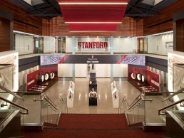 “It’s a very rich and diverse LED display that binds all the static and physical elements of the space together into one dynamic focal point,” said John. “The football coach can come in and show football content, the cross-country coach can show cross-country content, and then they can create messages for the public, students, or donors. It really achieves all the elements we were looking for today, but then it also allows us to keep the space fresh for future generations of Stanford athletes and fans.”