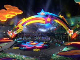 To add to the already complex event, the main headliner for the Opening Ceremony pulled out the day before, leaving the team to reconfigure the content with just 24 hours’ notice. With such a short turnaround, Scott Millar from Bild Studios chose Notch and disguise because of the proven compatibility and solid combination, meaning it would be delivered on time. To overcome the artist issue, a virtual DJ was flown out for the Opening Ceremony last minute. The user-friendly features of the disguise server meant the DJ content was immediately integrated with the compiled show.