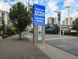 The ability to sync the screens gives Wembley Park the option to create digital experiences combining all three digital displays in this area; a feature that was used for the NHS commendation.